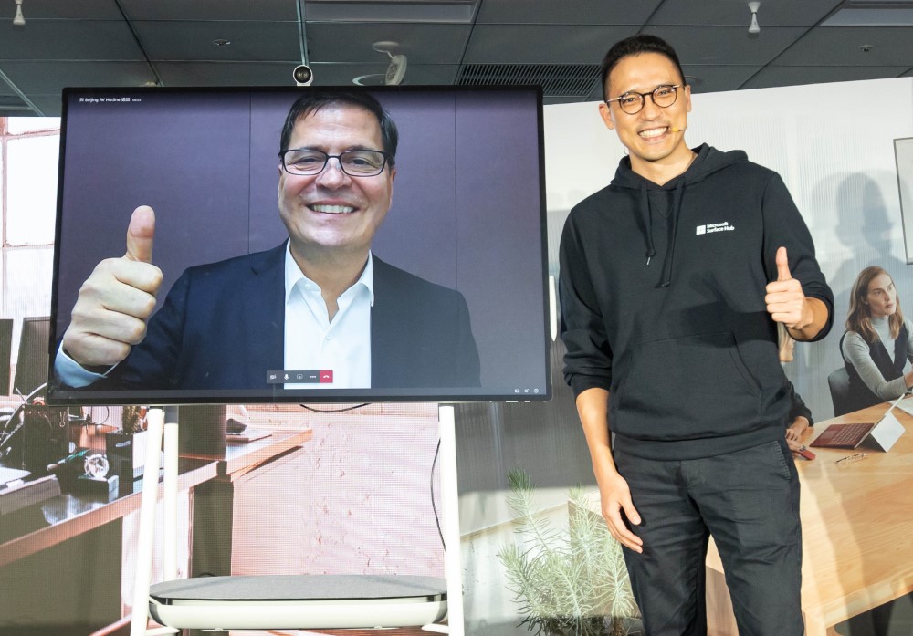 團隊利用 Surface Hub 2S 搭載的視訊硬體,搭配 Microsoft Teams 進行遠距會議,並且能以 email 方式邀約組織外的外部人員加入會議,讓遠端協作更為流暢。