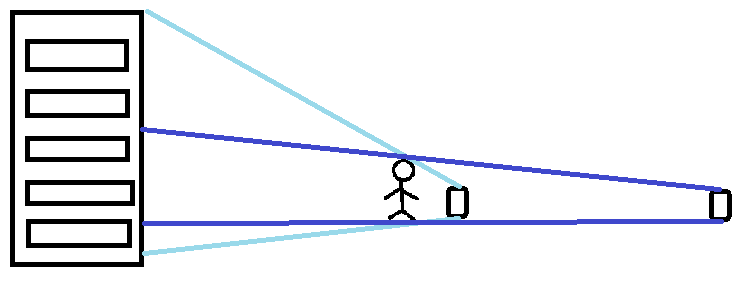 那壓縮感是怎麼來的?我們以下圖來看,廣角可拍攝的角度大,背景可容納範圍也更大,所以在距離感上也會比較遠;而長焦望遠所拍攝的角度小,背景容納範圍小,這也產生了背景離主角很近的感受,也就是所謂的壓縮感。