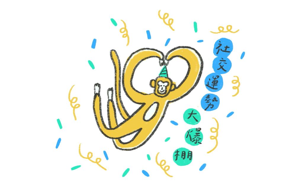 不論是工作或私生活,今年小猴們的社交運勢大爆棚!各種聚會場合將湧現,而你也會光芒四射閃耀人群,有機會結識風趣、能帶給你啟發的朋友,有些甚至可能發展到曖昧關係。享受巨星光環之餘還是要小心樹大招風,今年的小猴們比較容易吸引流言蜚語,建議慎選你的破冰話題,避免第一句話就說:「嗨 晚點有事嗎?」給人玩咖的印象,否則可能會不小心失去認識正緣的機會。