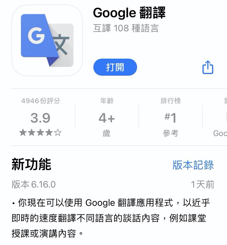 應用名稱:Google Translate