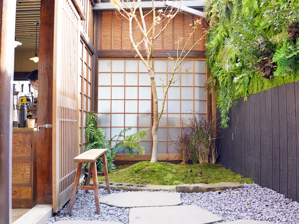 哭哭咖啡雖然以外帶咖啡為主,但店家對於裝潢可不馬虎,吧檯是用兩張來自日本九州佐賀県大正時期的櫃子加上三張九州長崎県昭和時期的櫃子,搭配訂製的黃色背板咖啡機無違和的與古物完美的融入,整體空間不大,不過從前庭到後院都充滿巧思,我們這天花了很多時間在等待日式菓子包,也特別能靜下心來體會這裡的美,看到很多人抱怨這裡太多人很難拍空景,很簡單啊只要跟我們一樣耗在這裡兩個小時,或一天來兩次,保證可以拍好拍滿…