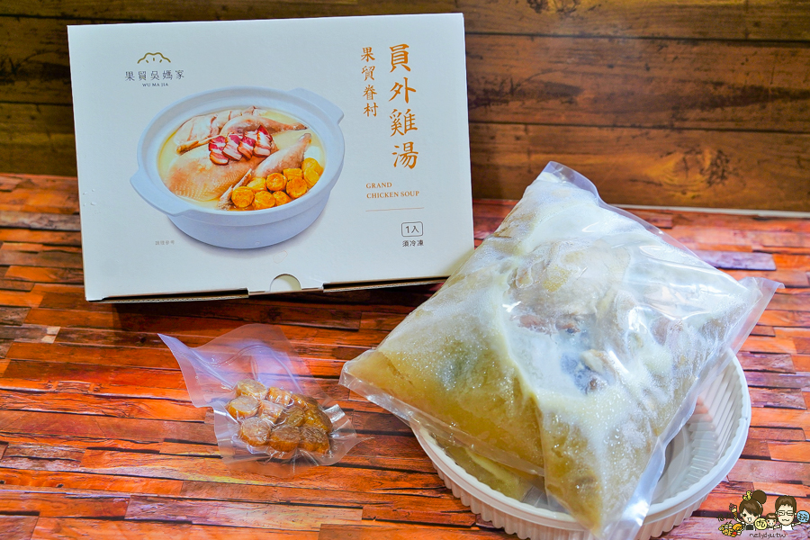 眷村員外雞湯,包裝很精美、湯頭跟干貝還分開裝