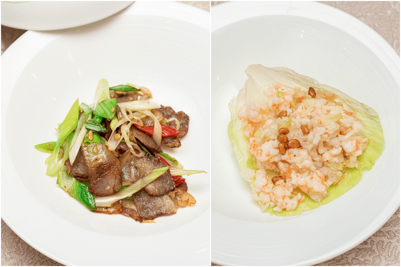 你可以任選右邊的蒜苗酒糟肉或是左邊的生炒鮮蝦鬆,鹹香的蒜苗酒糟肉或是清爽彈牙的蝦鬆,不管哪一邊都給人很不錯的口感