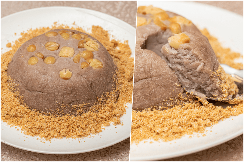 最後最後,如果你是中式甜點狂,江南春的蓮子芋泥(320元,份)絕對不要錯過,吃不完最多就是帶回家再吃