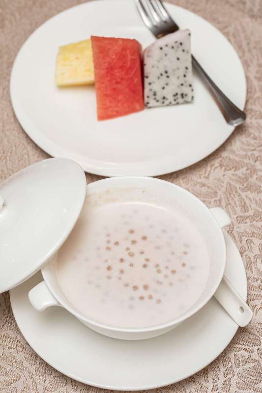 最後,商業午餐部分也有熱燙香甜的芋泥珍珠露與水果,這樣一整套吃下來好讓人覺得溫暖而愉快