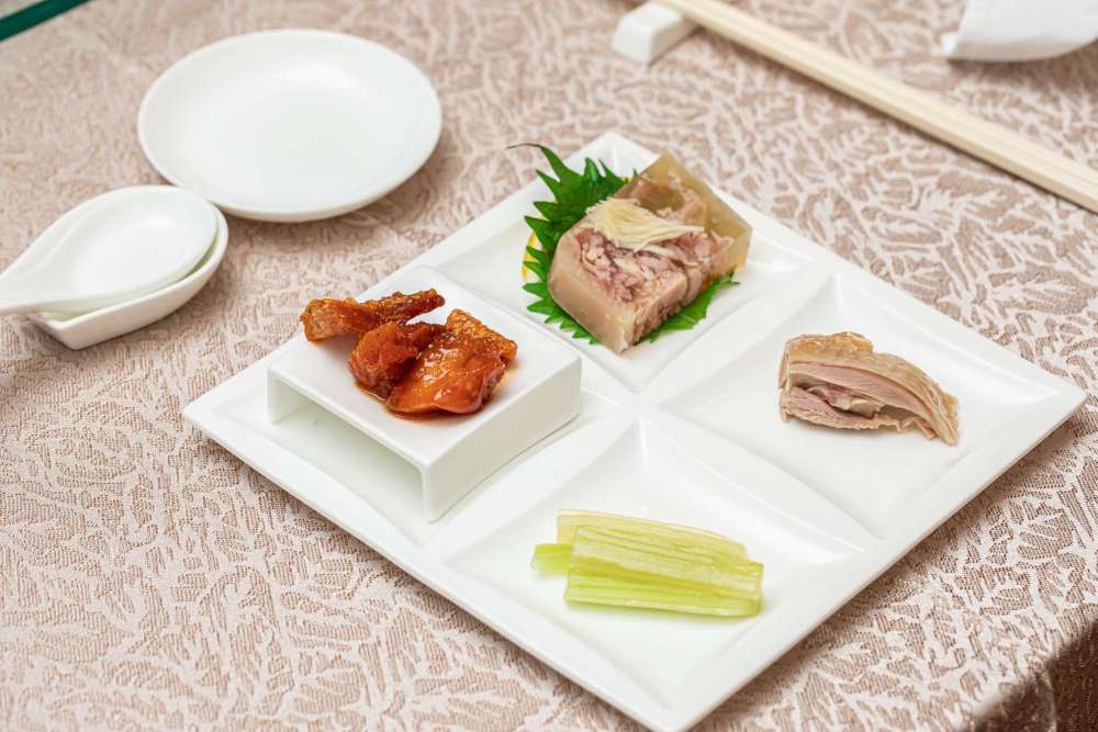 首先第一道四季春迎賓盤,就是紹興醉雞、蘇式燻魚、水晶肉凍、芥末西芹的組合拼盤,份量整體而言不算多,但是開胃度跟美好感受都讓能讓人會心一笑