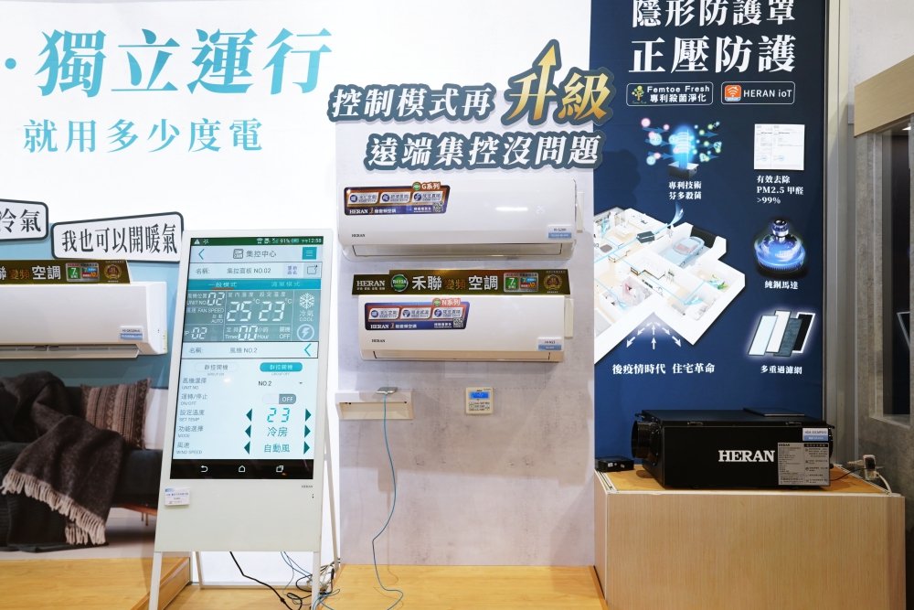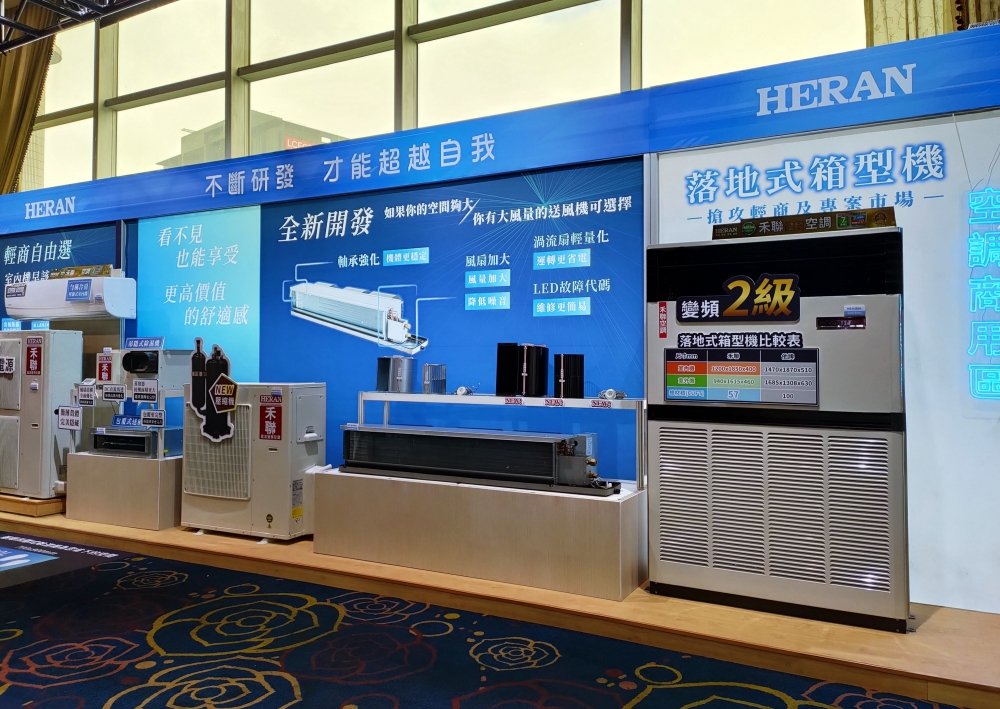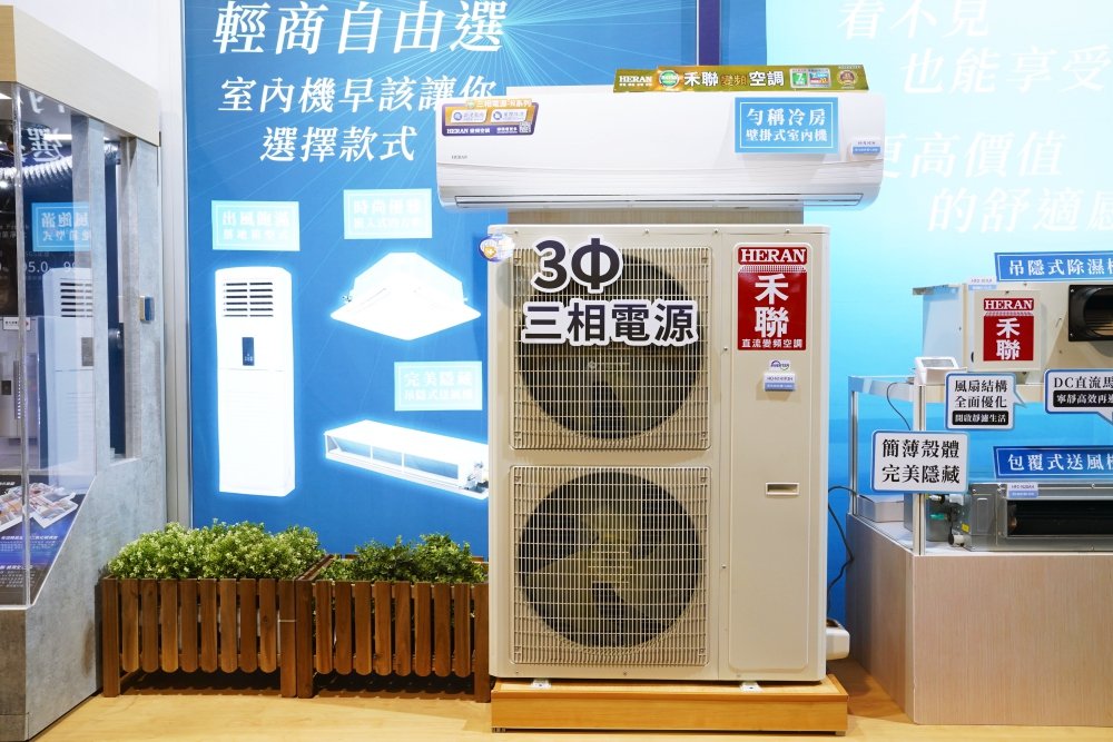 空調商用區展出落地式箱型冷氣機,能達到變頻 2 級,體積較他牌小。以及針對商用機的開發成果展示,商用機使用頻率高,需要更穩定的機體、大風量、低噪音、省電,這些條件禾聯都能達到。