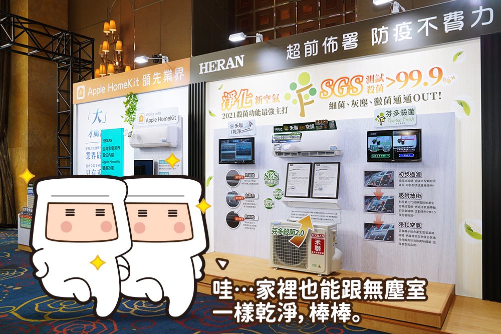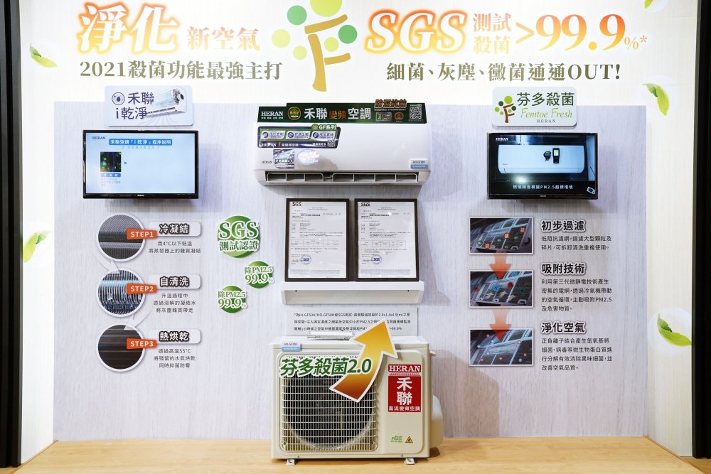 防疫讓人更注重空氣品質與流通,禾聯的奈米活氧系統拿到 7 項專利,能有效去除 PM2.5、甲醛,並達到抑菌功用,還可用手機 APP 或網頁進行遠端控制、管理。