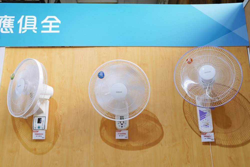壁掛扇展出三種不同類型:智能變頻、電子遙控、傳統機械式,可以與空調一起入手輔助使用。