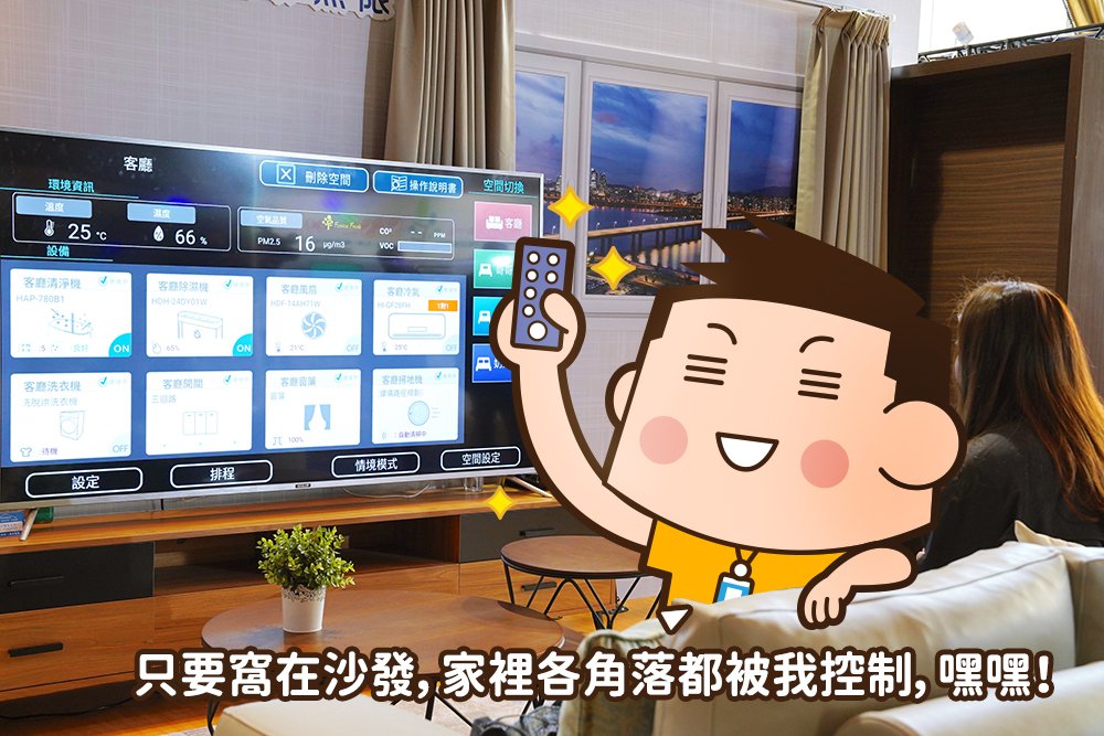 越來越多人應用智慧家庭讓生活更輕鬆,禾聯直接把智慧家庭客廳搬來做示範性的展出,在客廳,不用到處跑,只要新增想要控制的房間、設定裝置,下載禾聯 IoT APP,就能用手機操控禾聯家電,或是用遙控器操控/聲控客廳窗簾,一聲指令就能啟動智慧家電 AIoT 物聯網。