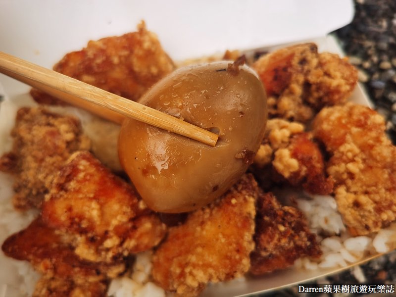 大湳小林雞排肉羹必點轟炸雞飯蛋,65元CP值滿滿的炸雞塊,加上一顆滷蛋,以及白飯上面淋上滷肉,雞塊簡單說就是放大版的鹽酥雞,現點現炸所以要小等一下,炸雞塊咬下去外面酥口鹹香