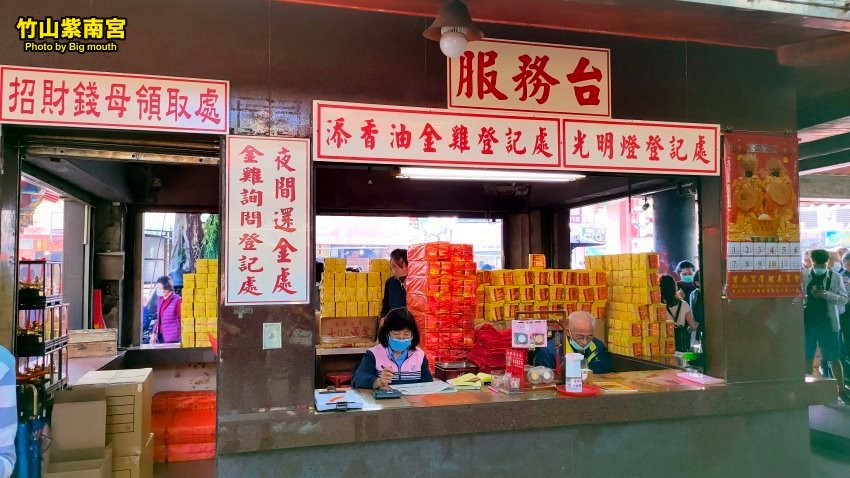 ▼一旁服務處則是光明燈、添香油金雞登記處及夜間還金、金雞詢問、招財錢母領取處,有任何問題也可以來這裡詢問!