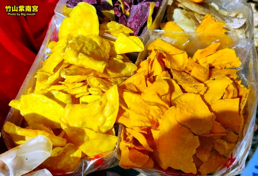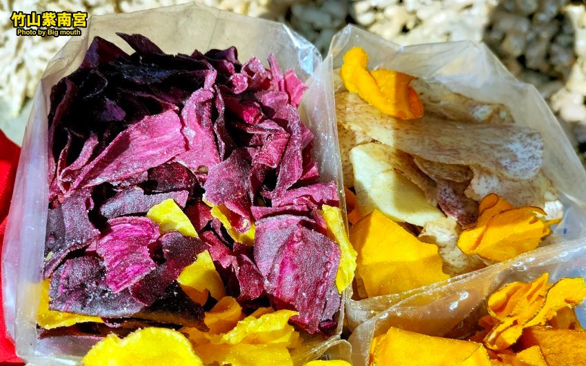▼這裡還有提供免費試吃,一共可以吃到黃地瓜、紅地瓜、紫地瓜、芋頭脆片等四種口味,黃地瓜比較硬脆,紅地瓜比較脆甜,紫地瓜則是產量比較少,芋頭脆片就是芋頭鹹香的味道,偷偷告訴大家紅地瓜片真的比較好吃,大家可以多買一點(笑)!