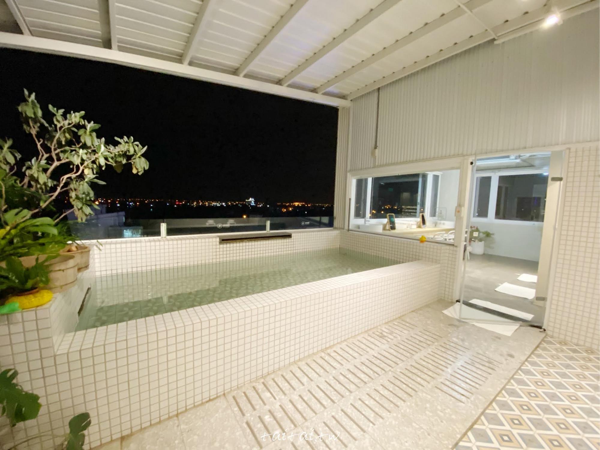 番茄溫泉旅店性價比無敵躍升的設施之一,就是位於五樓的半露天大浴池,這是需要穿泳衣入場的,僅在晚間開放,可以看一咪咪蘭陽平原的夜景,以及聽到火車來來去去的聲音,很有趣的體驗。