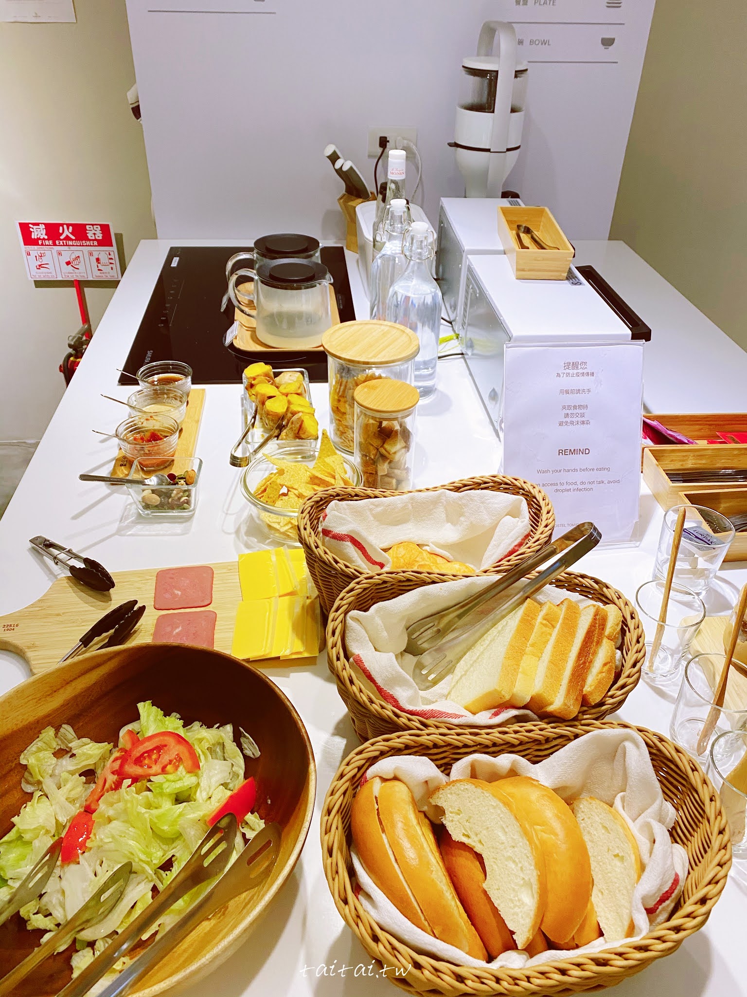 讓我決心要特別替番茄溫泉旅店寫一篇文章,是在隔天的早餐時間。平均一人只要750元的房價,供應的自助式早餐可以說是誠意滿滿,有兩、三種麵包,兩、三種果醬,還有生菜沙拉、火腿、起司,以及咖啡、豆漿、牛奶,以及自助沖泡的唐寧茶,工作人員也很勤快地查看大家取餐狀況,適時補充,堪比一些快捷商務旅館的早餐。
