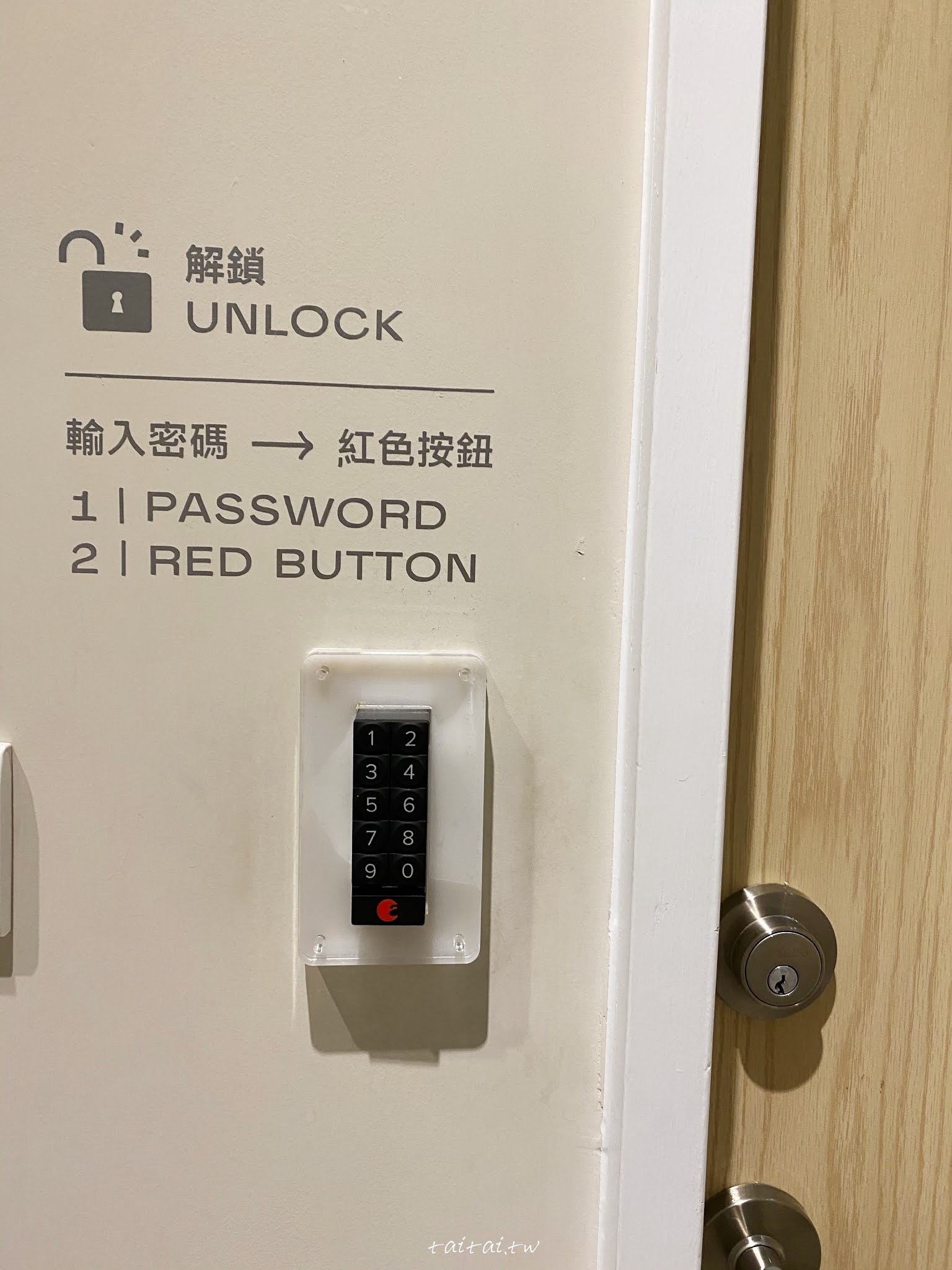 我洗完澡以後,腦海裡的密碼就隨著洗澡水被沖進水溝了,我就在門口按了很多次4639、4936、4239、6934……總之都不對(顯然我完全沒有猜密碼的能力)。於是我只好披著睡衣半乾著頭髮去一樓問工作人員密碼是多少,再上樓….還是不行,因為我輸入錯太多次、系統為了安全起見把密碼鎖鎖起來了XXXDDDD,最後是工作人員用他的權限幫我打開密碼鎖XDDDD,