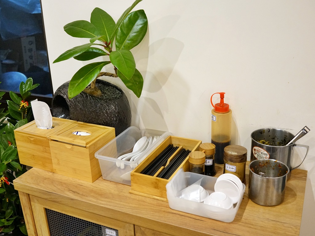 ▲餐具、醬料、面紙請自取,有提供兒童餐具在下方櫃內。