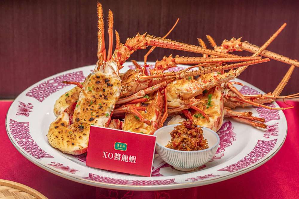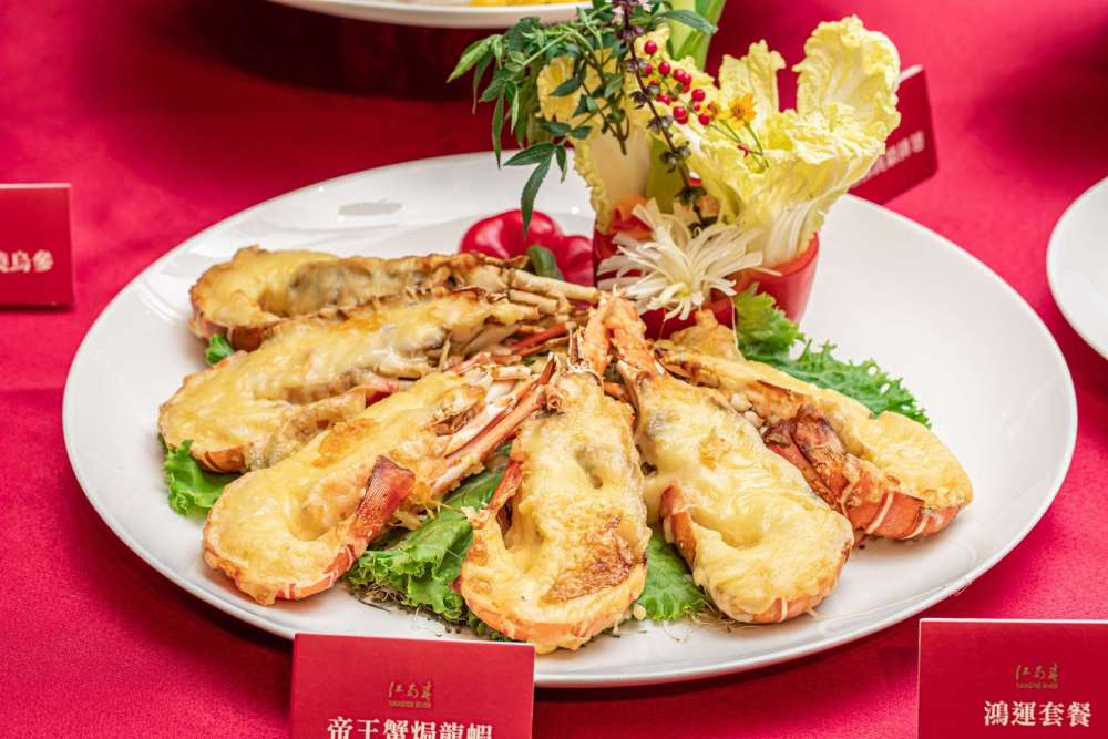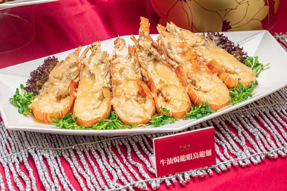 再來,包括牛油焗龍蝦佐烏龍麵(2988元,三隻)搭配上湯佛跳牆魚翅(3288元,份),還有獅頭烏參海鮮煲(1088元,份)搭配黑松露鮮干貝(1088元,每份12顆)