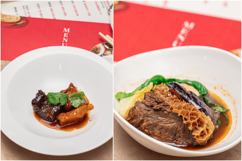 再來這兩道,算是重口味裡的極致選擇,彈牙又入味的江南春虎掌花膠烏參,還有香辣但不死鹹的珍珠坊麻辣牛雙寶,都是很適合當作年菜的單點料理