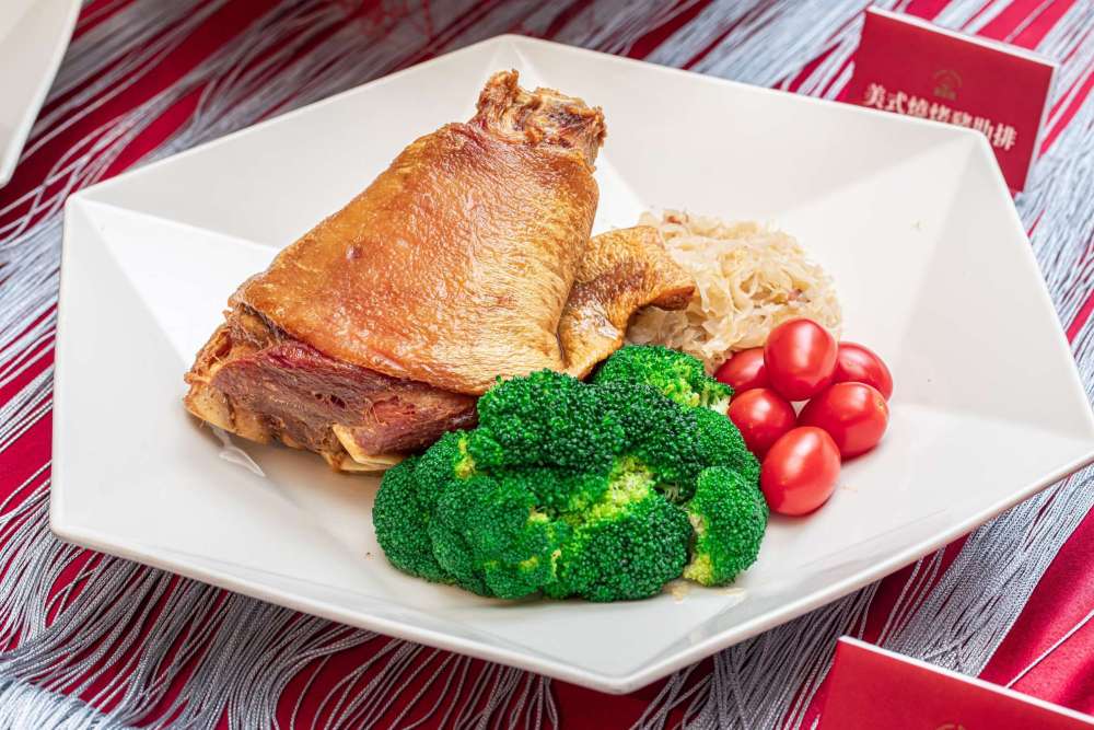 其中包括德國豬腳(888元,1200克),還有迷迭香烤羊排(1288元,八隻)跟美式燒烤豬肋排(888元,八隻)
