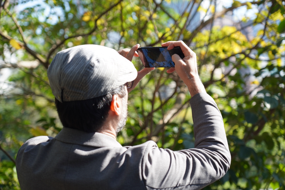 又或是比方說在松菸文創園區的生態池旁,想要拍攝池邊的天鵝,拍照時只要需要調整變焦倍率,可以彈性選擇拍攝 0.6 倍超廣角到 100 倍望遠的照片。