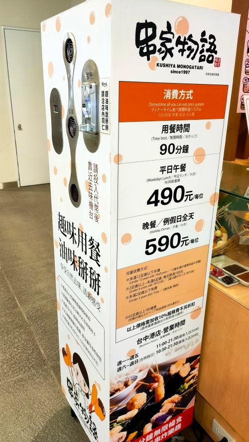 ▼串家物語的用餐時間為90分鐘,價位平日午餐為490元,晚餐及例假日為590元,未滿12歲半價、2~6歲酌收100元,2歲以下免費,65歲以上打7折,一家大小都很適合來享用!