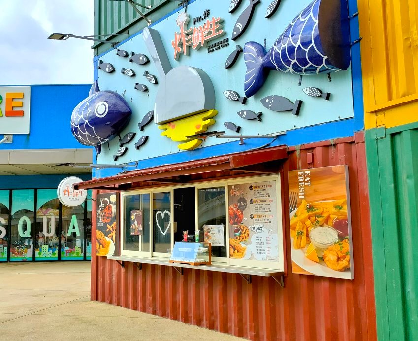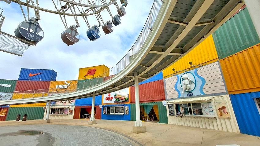 ▼摩天輪旁也全新改裝,打造出巨型招牌貨櫃市集,不僅繽紛又可愛,上頭的招牌更是巨大又立體,也是熱門的IG打卡點!