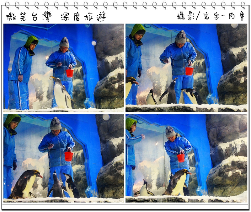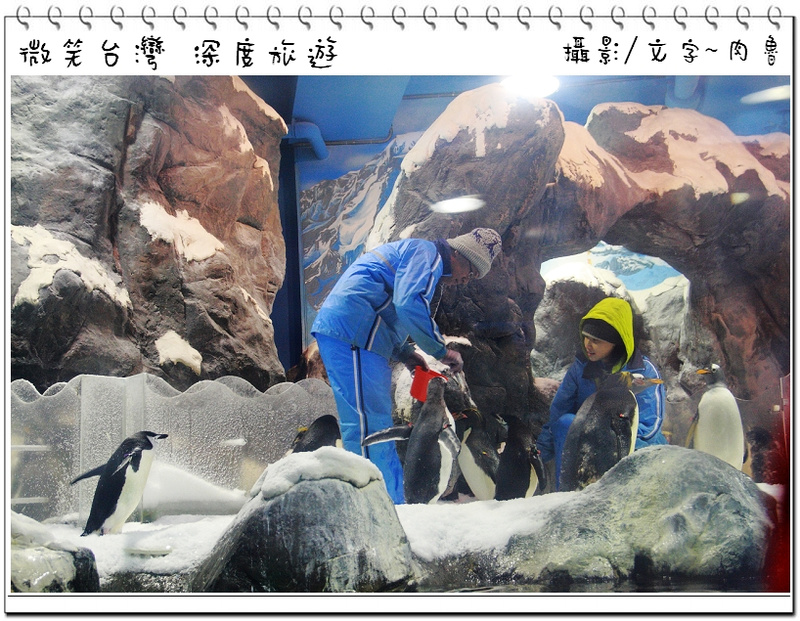 ▲每隻企鵝身上都有辨識手環,企鵝餵養員跟肉魯說有隻企鵝超愛吃超愛搶食物的,一邊餵食還感受到企鵝一直咬你的小腿,因為他們在跟你要食物吃,有的企鵝比較高大,剛好嘴巴到膝蓋位置,常常他們餵食完畢後,膝蓋都黑青了,果然是很辛苦的企鵝餵養員。