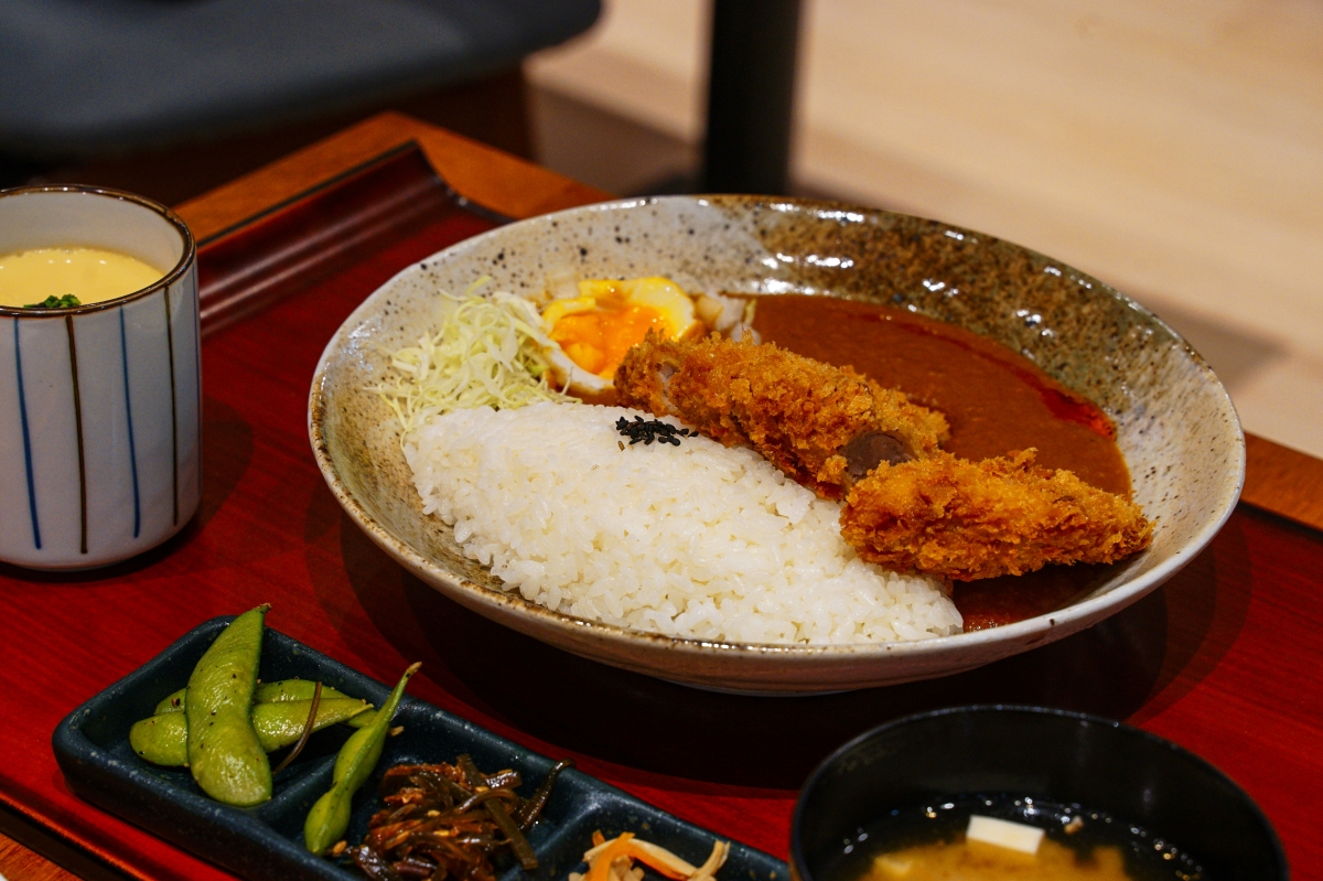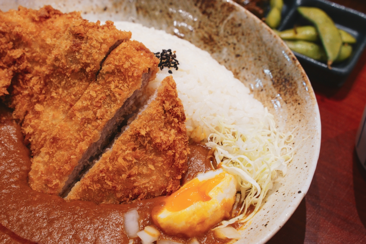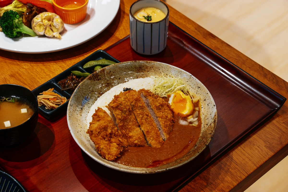 使用大量蔬果熬製,經過 48 小時靜置熟成,濃郁帶點微辣的口味,與一般偏甜的日式咖哩很不一樣,是十五郎特別研發製作的咖哩醬汁,我覺得很不錯,還蠻喜歡的!豬肉選用台灣國產豬,腰內肉則是我自己吃豬肉時最喜歡的部位,沒有油脂卻十分柔軟,麵衣厚度適中,口感外酥內嫩剛剛好,沾取咖哩醬與白飯一起入口,真的超級滿足~