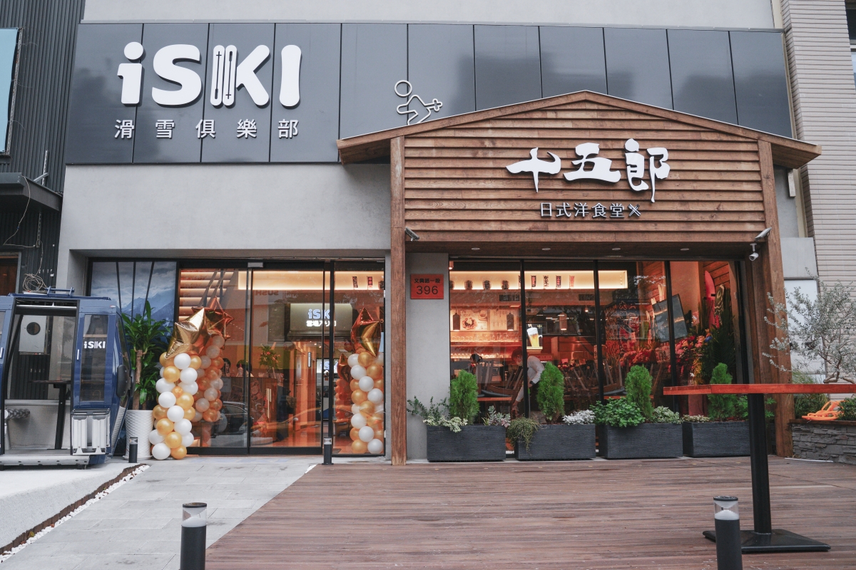 iSKI 竹北店位在文興路上,鄰近高鐵,附近有汽車停車格,停車還算方便。門口看到左邊是滑雪練習場,右邊是十五郎。十五郎日式洋食堂的招牌使用木造,就像滑雪場內的山中小屋休憩站,看到就覺得暖暖的。