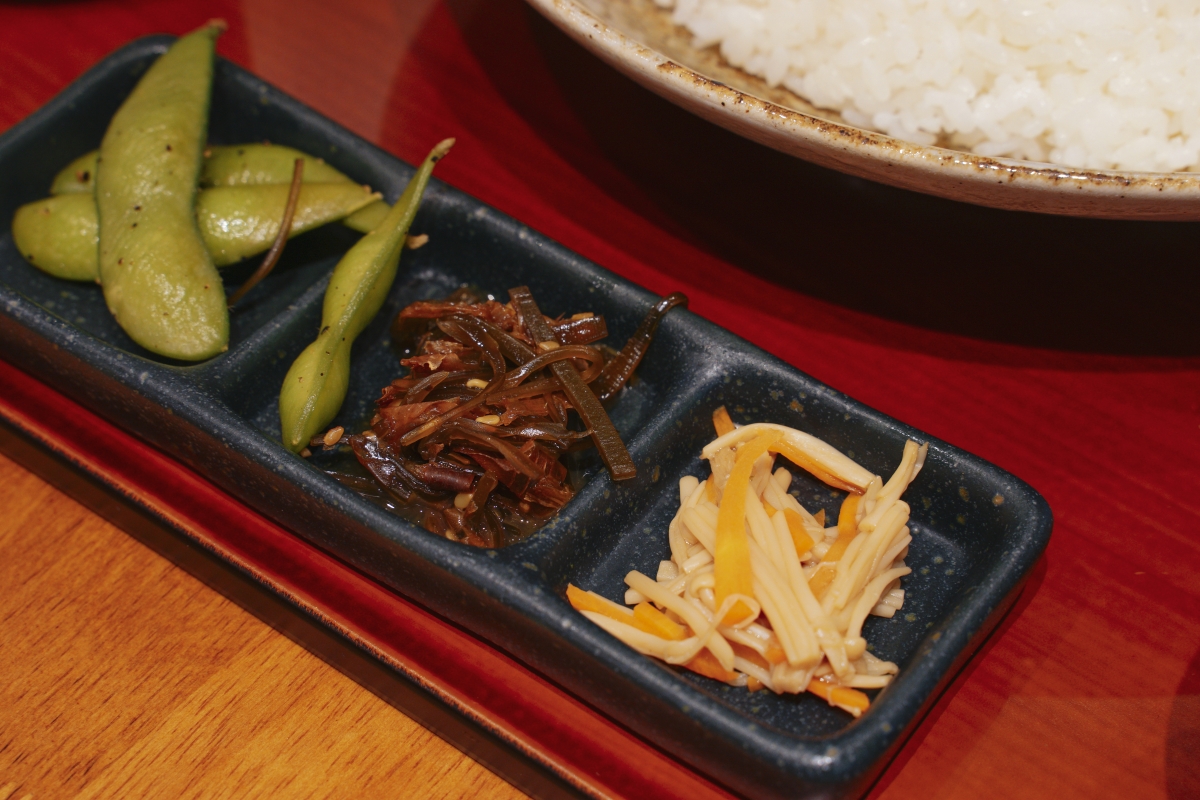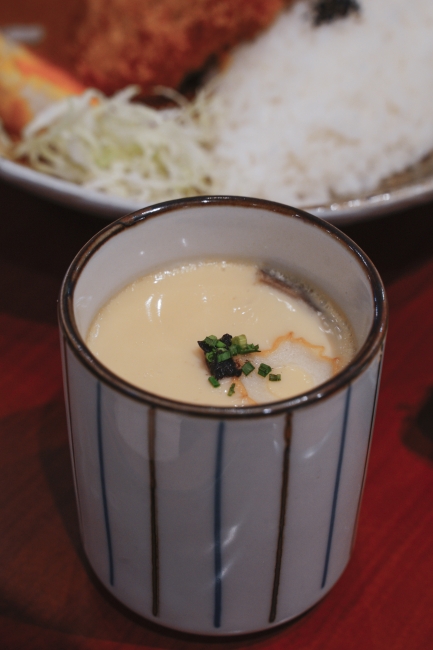 配菜有三樣小菜、味噌湯以及茶碗蒸,茶碗蒸內有些許配料,上面還有放一些松露油,散發淡淡的松露香氣,我覺得還蠻好吃的。