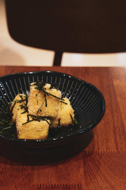 薄皮麵衣包覆著柔軟的芙蓉豆腐,口感香嫩滑順,搭配清爽的蘿蔔泥與海苔絲,滿滿經典的日式炸豆腐風味,建議大家趁熱吃最好吃。