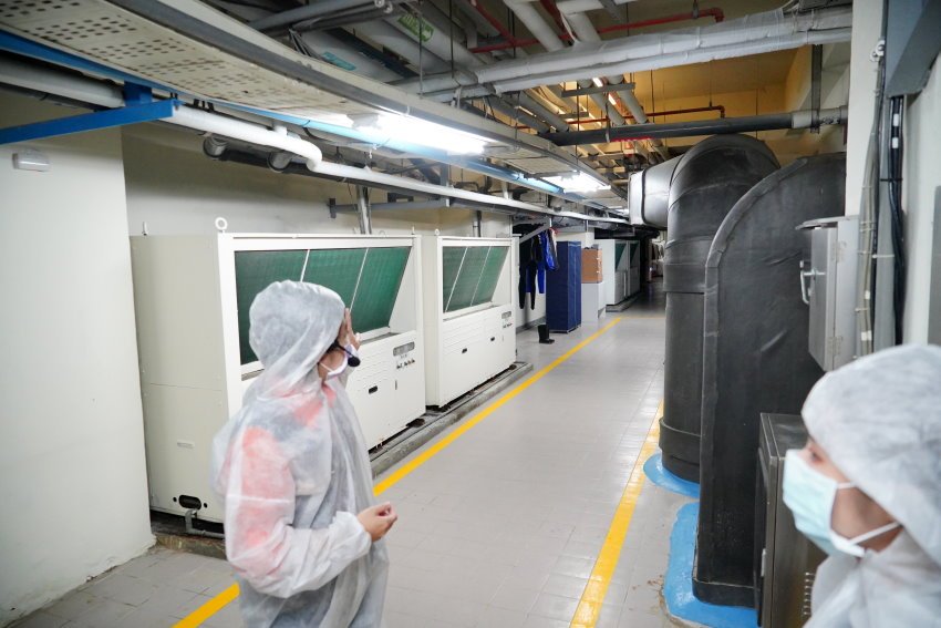 ▼登愣~~這裡就是企鵝後場啦!導覽人員也會一一跟大家介紹照護企鵝的秘密法寶唷~~像是這裡需要灌入很多的冷空氣,讓企鵝可以確保生存在低溫的環境中,並維持飼育環境的恆溫!