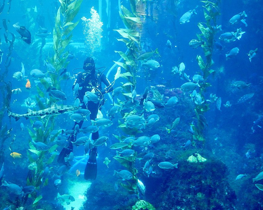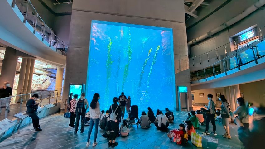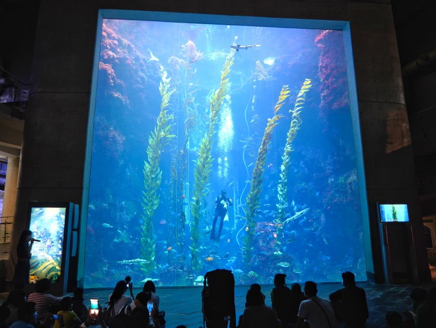 ▼這裡特別設計成10×10的正方形大水缸讓大家可以欣賞巨藻與共生的魚群,時間一到也會有餵食秀表演,同時也會有服務人員介紹巨藻生態,大家記得來參觀一下!