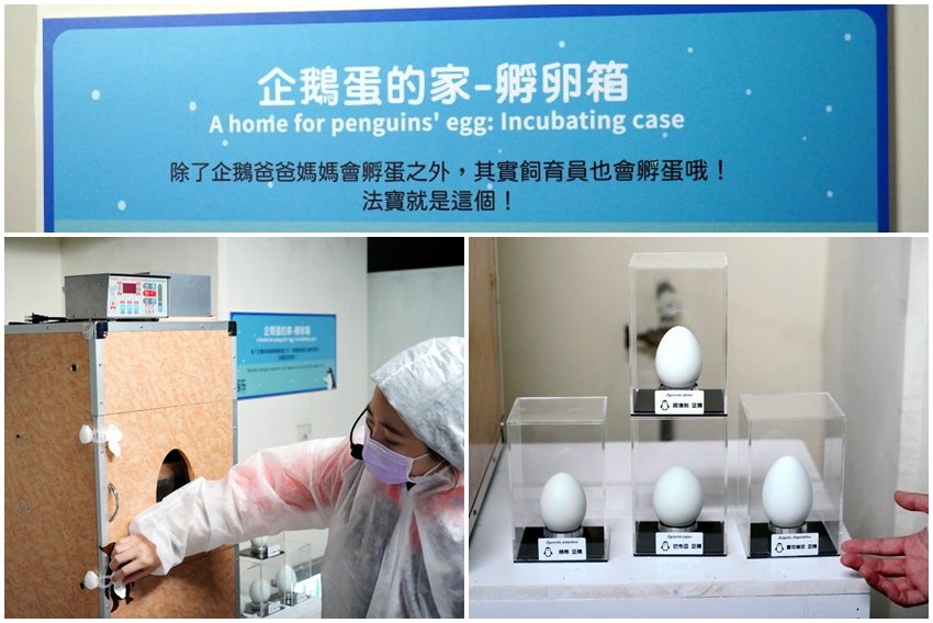 ▼另外還有孵卵箱,也就是模擬企鵝孵蛋的溫度、翻轉的狀況來替企鵝孵蛋,一旁也有四種企鵝蛋的模型,看起來形狀、大小都不太一樣呢!