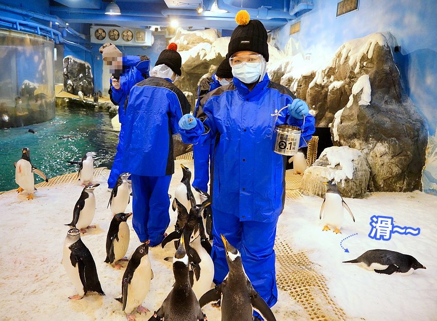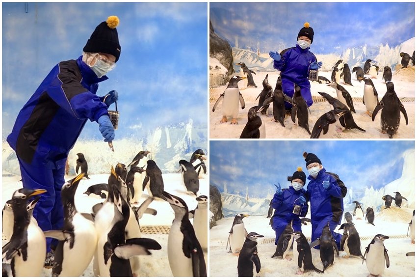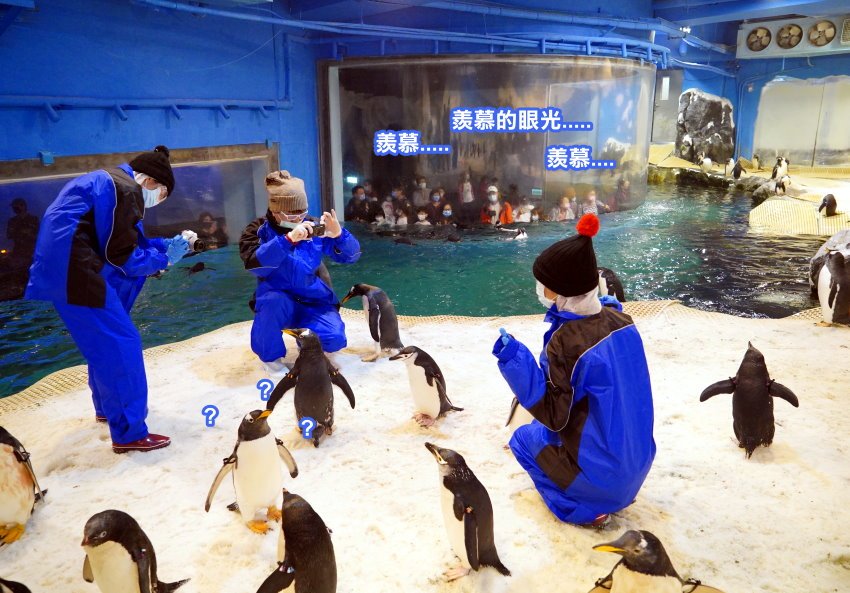 ▼餵完之後飼育人員也會讓我們蹲下跟企鵝一起拍美照,只見外頭的遊客紛紛投以羨慕的眼神…….