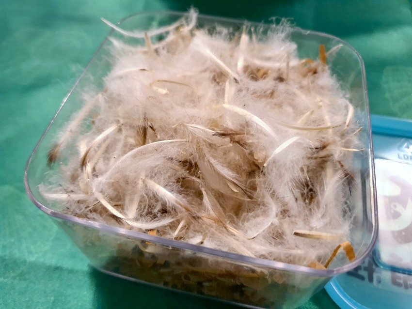 ▼中間這一盒就是飼育人員收集來的企鵝羽毛,都是換毛的時候掉下來的羽毛,大家可以任選一根裝入瓶中帶回去當紀念唷!如果是純白色的羽毛就是靠近肚子的羽毛,夾雜黑色就是靠尾巴的部位,整個很有趣啊!