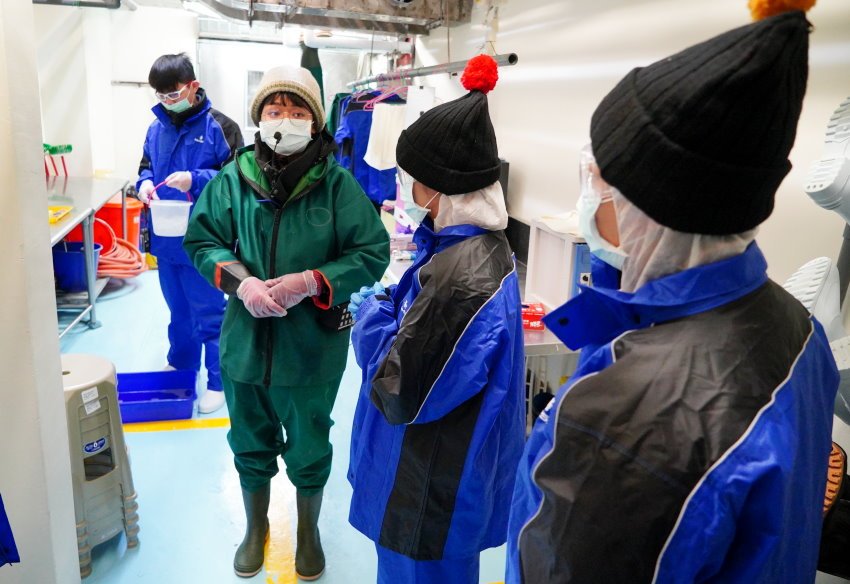 ▼講解完之後就要前往消毒、換裝啦!大家可以先將鞋子放進鞋櫃裡,出來的時候再換回來即可!