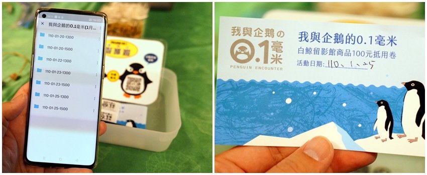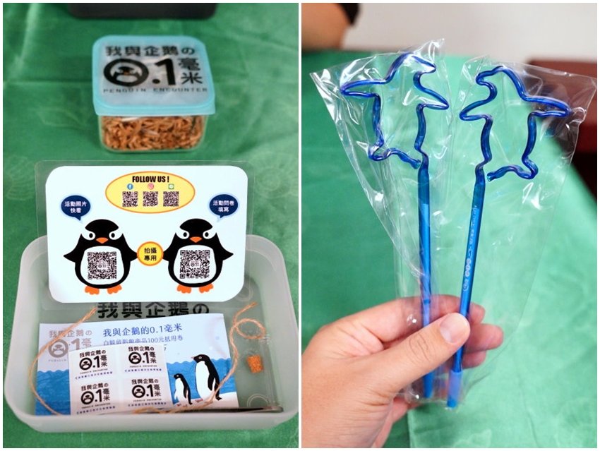 ▼材料都放在前方小盒子裡頭,飼育人員幫忙拍的照片都會上傳到雲端,有參加的朋友記得掃描QR Code去下載,活動後三天內照片就會移除囉~~大家千萬要把握時間!一旁也有問券調查,填寫完畢就會獲得企鵝筆一隻,也是挺不錯的!