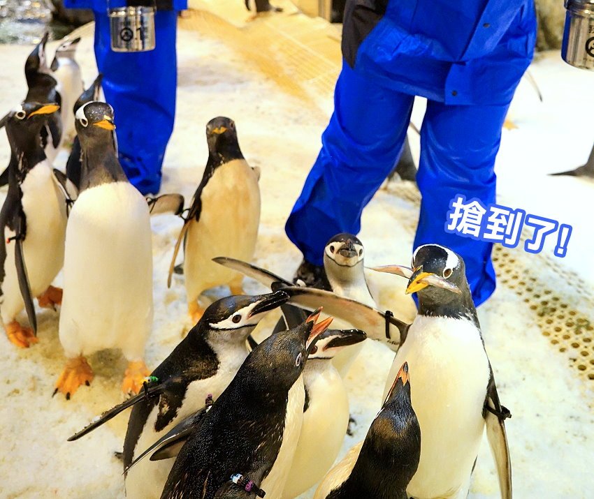 ▼果不其然是由人高馬大的企鵝搶到食物,感覺這隻企鵝還散發出一臉得意的表情!