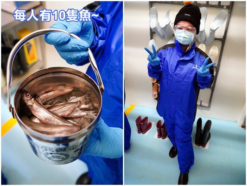 ▼接著就是要來穿著防護衣啦~~因為缸內溫度只有-2到-5度左右,待在裡頭的時間約10~15分鐘,所以還是要注意保暖!!怕熱的朋友其實裡頭穿著短袖前往參加活動即可(像我們就是),因為除了防護衣之外還有一層雨衣跟保暖毛帽,進缸時我們是覺得不太會冷~~怕冷的朋友則建議可以穿著薄型發熱衣、薄長袖,且還是要穿襪子比較好,不然套進雨鞋的時候也是會覺得有點冰冰的,保暖也要做好!報名的時候就會先確認防護衣的尺寸,大家可以自行參考官網上的尺寸對照表!