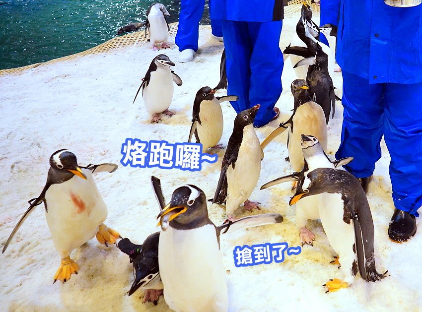 ▼每隻企鵝都蓄勢待發,整個很想衝刺~~~看來柳葉魚只能塞牙縫,完全不夠牠們吃啊!!