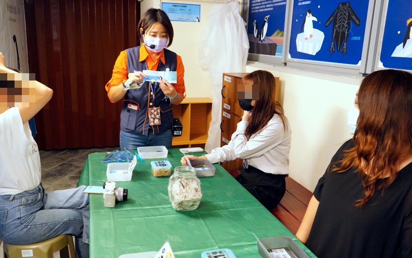 ▼時間一到導覽人員就會出現啦!!一開始會先填一張「疾病與接觸史切結書」,會詢問個人健康狀況、寵物鳥/家禽類等接觸史,畢竟企鵝屬於鳥類,為了保護企鵝與飼養環境,還是需要請參加的朋友如實填寫唷~~接著服務人員會在手腕上蓋一個章,以避免洗手不小心洗掉,也代表著報到完成囉!