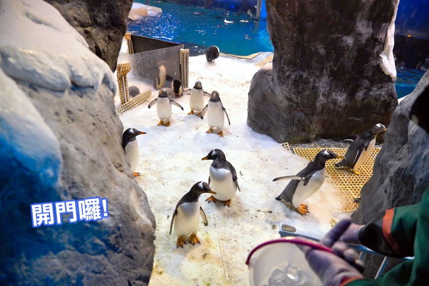 ▼進缸前企鵝保姆會再跟大家說明一下注意事項,包括不要踩踏、觸摸企鵝,經過中間走道時走路要像企鵝一樣大字型踩踏在兩旁高處才不會滑倒,不能蹲下餵食企鵝以免被啄食、注意不要跌落水中等等,講完後就開啟閘門帶領我們進去企鵝的世界啦!