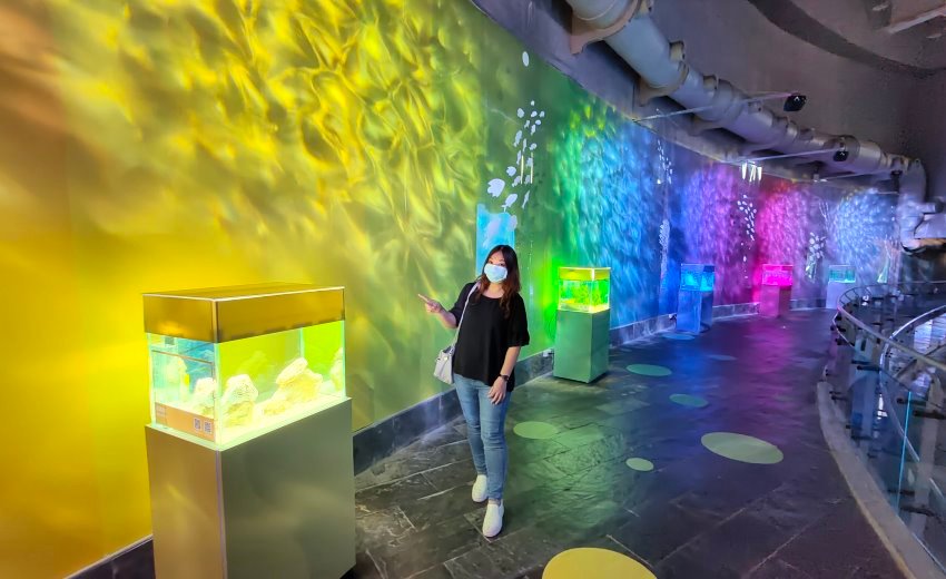 ▼強烈推薦一定要來「色水廊道」拍照集點,地點就在世界水域館3樓海藻森林旁,七彩又繽紛的色澤整個很夢幻啊~~拍完照記得掃描QR Code,集滿七點就可以兌換手繪明信片一張唷!