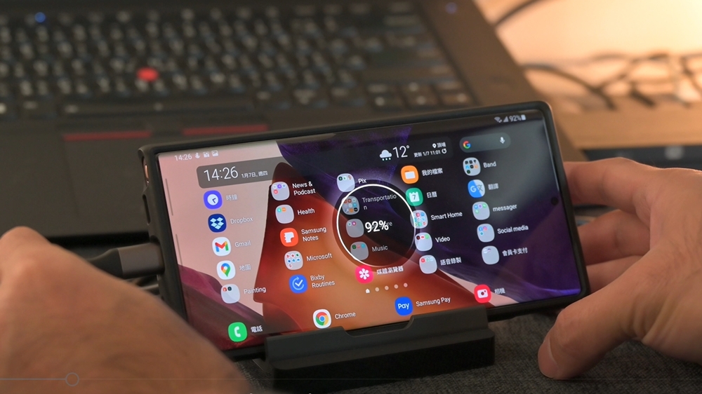要替手機相片進行備份也很簡單,只需將 USB 隨身碟插上共享的 USB-A,將檔案放進隨身碟上,再切換回電腦畫面,這時電腦就能讀取到隨身碟檔案。。