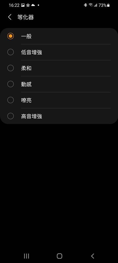 設定中的等化器可以選擇不同的音效,像是低音增強或是高音增強、嘹亮、動感等都可以讓音色更適合曲風。