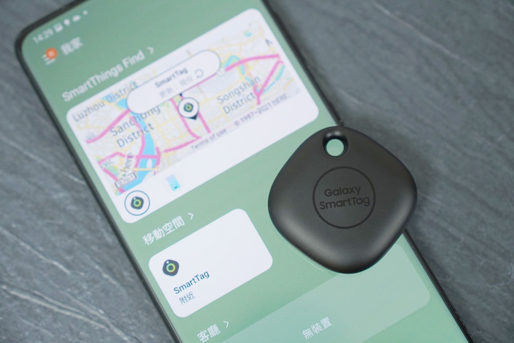 Galaxy SmartTag 藍牙智慧防丟器的大小只比 50 元硬幣大上一些些,和三星手機的 SmartThings Find app 配對之後就可以啟用,透過 SmartThings Find 即時定位就可以確認 Galaxy SmartTag 的位置,外出旅行時很適合把 Galaxy SmartTag 掛在背包上,一般日常則是可以將 Galaxy SmartTag 掛在鑰匙或是錢包上,找不到這些小物時,只要按下 SmartThings Find app 裡的「響鈴」功能,就可以讓 Galaxy SmartTag 發出聲音,幫助使用者快速找到東西。或是按下 Galaxy SmartTag 中間的按鈕,也可以反向尋找手機,讓手機發出聲音告訴使用者手機位置。