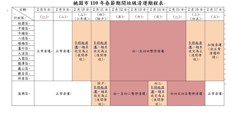 相關連結:桃園垃圾清運時程表