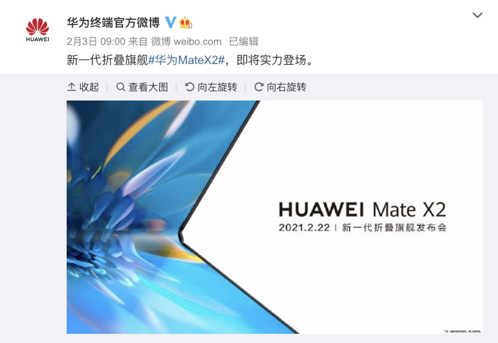 堪稱折疊機經典之作之一的 華為 Mate X 系列,自從 2019 年在 MWC 中與三星的 Galaxy Fold 一起大放異彩後,就在稍早華為官方正式透過微博預告,將會在 2 月 22 日帶來新一代的折疊旗艦機 Mate X2!